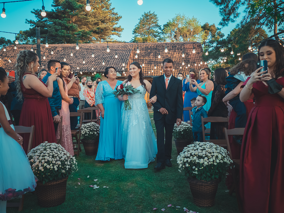 O casamento deles aconteceu na Chácara Mata Nativa, um sábado de sol, dia lindo, como eles mereciam. Como tantos outros, ainda em meio a pandemia, e com todos os cuidados necessários, foi uma cerimônia recheada de emoção e uma festa linda. Comida boa, bebida gelada, do jeito que a gente gosta!
