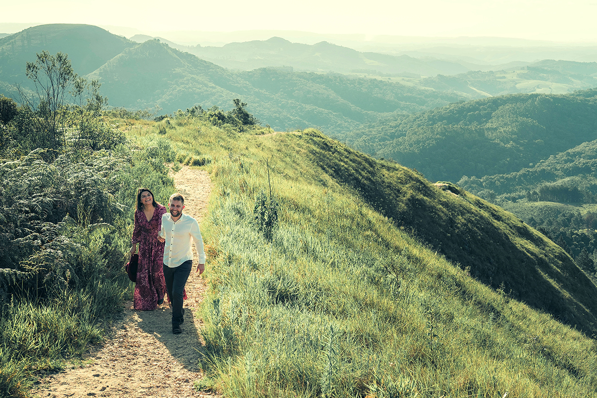 E quem estréia nosso site em 2020? Bruna e Christian, em uma aventura (pra lá de aventura, rsrsrs) no Morro da Palha, em Campo Largo, bem próximo a Curitiba. Como os caras das caminhonetes 4x4 estavam de férias, subimos a pé os "sei lá quantos metros" de altura. Foi cansativo, mas valeu a pena. O dia estava lindo e o casal em perfeita sintonia. Já disse e repito: quando é assim, nosso trabalho é facilitado em 100%.